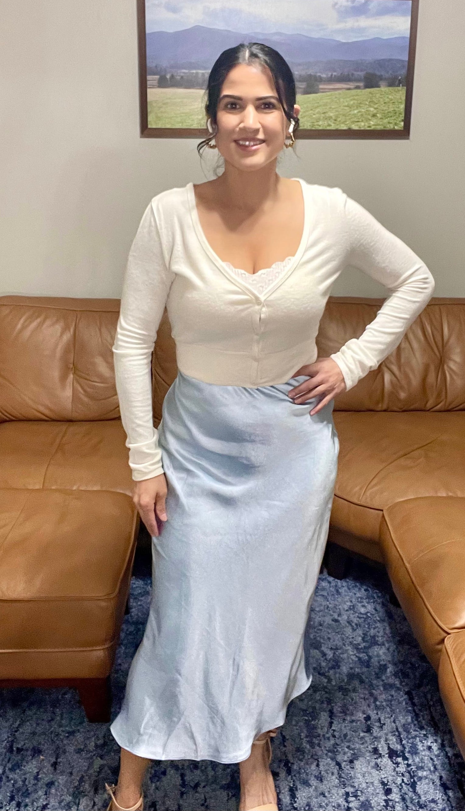 Styling Tip: Pair with seamless lace bralette, add minimal gold/silver jewelry piece, pair with long jeans/pants/skirt
