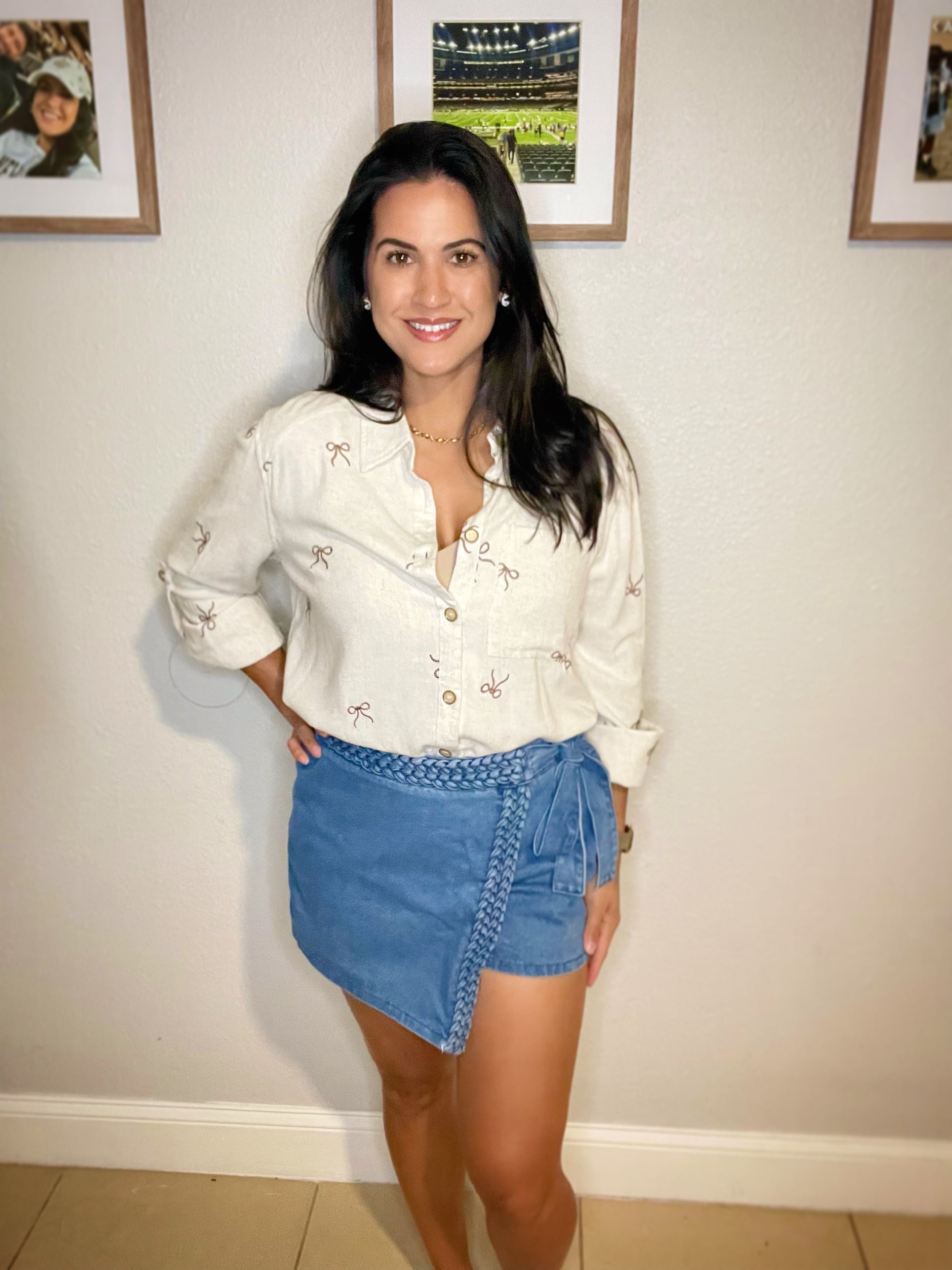 Umgee Linen Blend Fitted Shirt with Ribbons Embroidery- WH